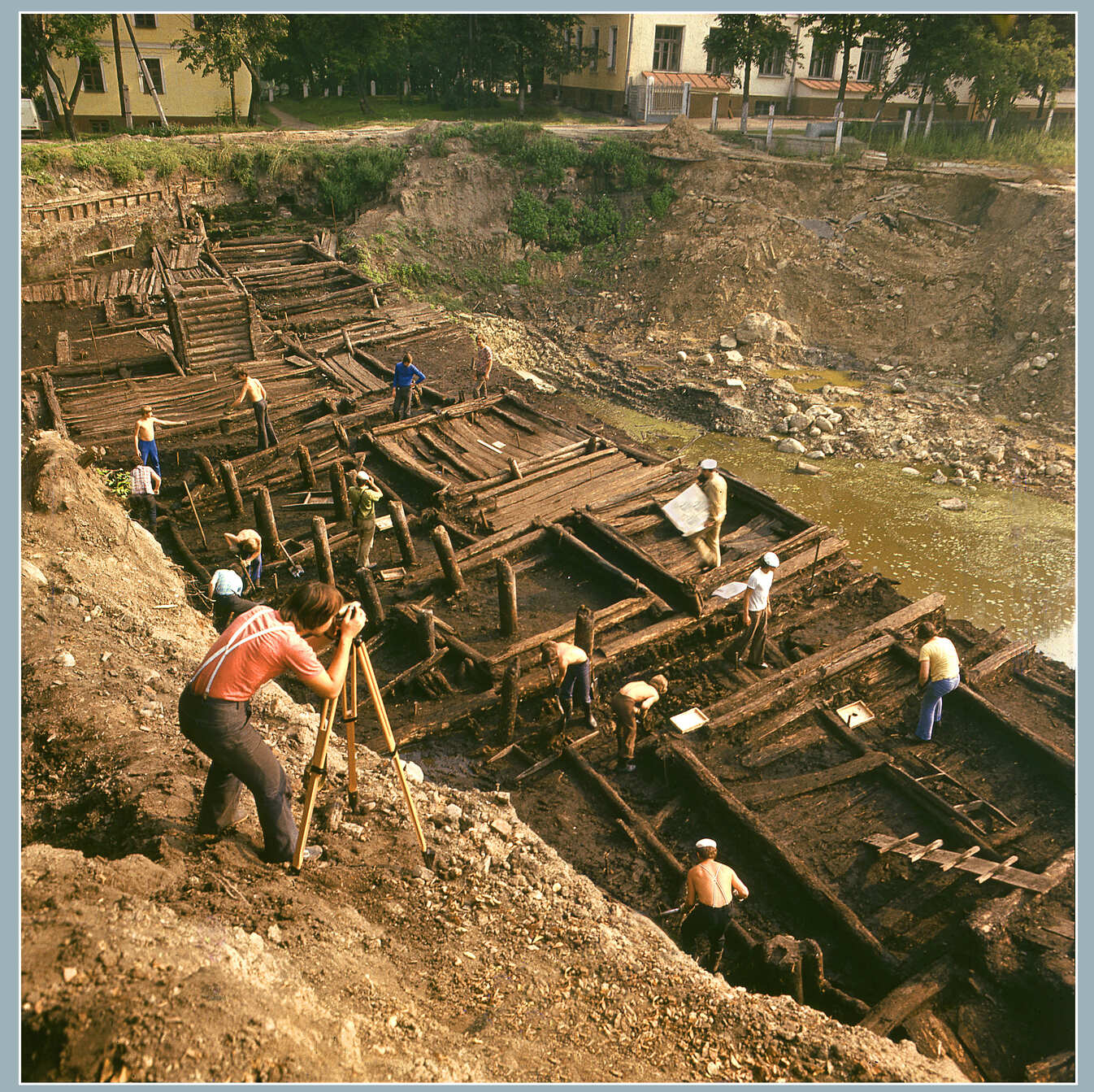 Археологическими исследованиями установлено, что первыми обитателями на городище были носители культуры штриховой керамики (первая пол. 1-го тыс. н.э.). Раскопками зафиксированы и напластования XI в., установлена стратиграфия и хронология культурного слоя городища, изучены его оборонительные сооружения, вскрыты участки городской застройки XII–XIII вв.: уличные мостовые, частоколы и 45 построек жилого и хозяйственного назначения. Получен богатый вещевой материал, который позволяет судить о бытовой и духовной культуре Слуцка XII – начала XIV в.