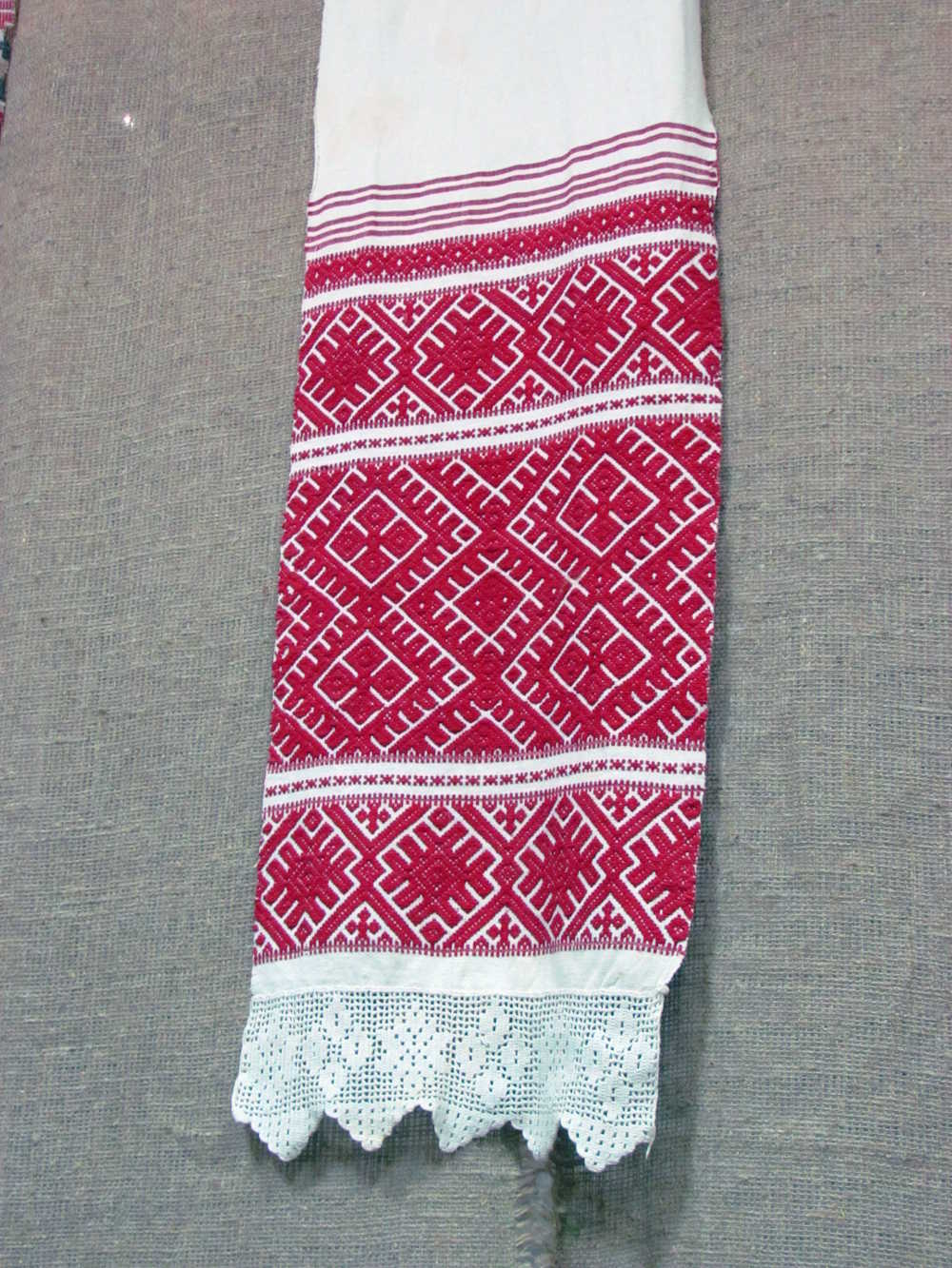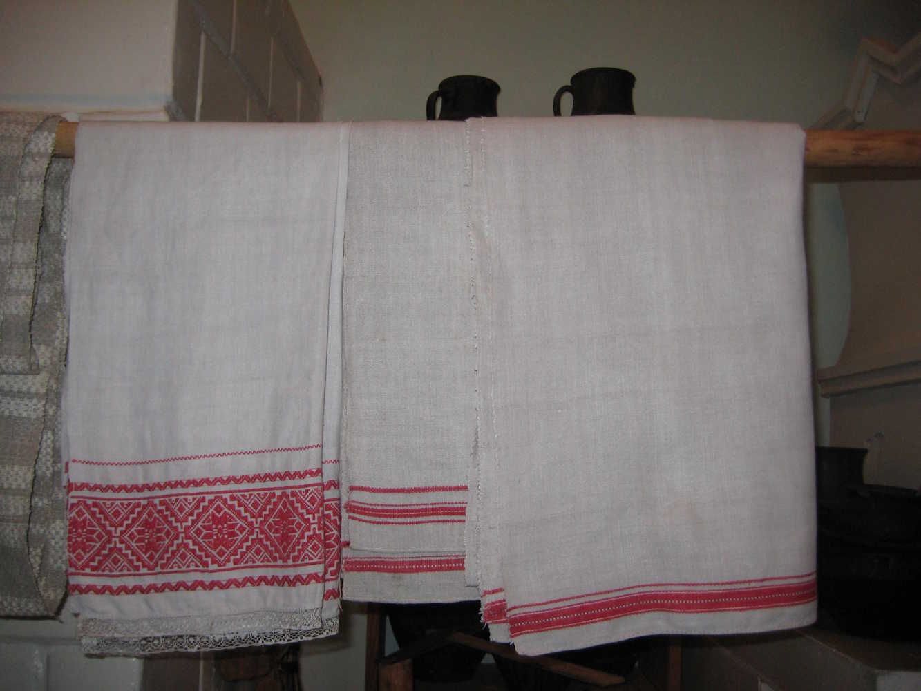 | Ручнік, рушнік | маркіраваная арнаментам, колерам і інш. сродкамі выразнасці тканіна, якая выконвае важныя рытуальна-сімвалічныя функцыі ў абрадах; паводле прызначэння падзяляюцца на утылітарныя, абыдзённыя, аброчныя, абрадавыя, вясельныя, святочна-дэкаратыўныя. |