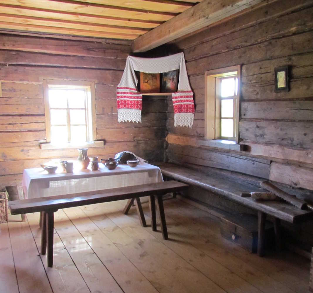 | Покуць | вугал, кут у хаце, дзе развешваліся абразы і стаяў стол; адна з найбольш сакралізаваных частак хаты, якая ўвасабляе «сваю» (замкнёную) прастору і адасабляе яе ад «чужога», вонкавага, не засвоенага чалавекам свету. |